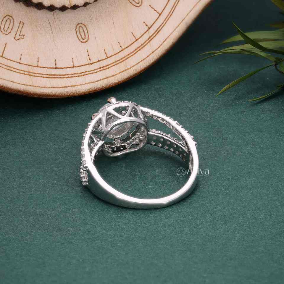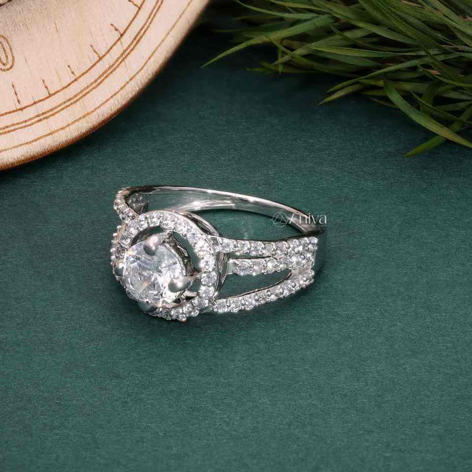แหวนหมั้นโซลิแทร์ทองคำขาว18K ดีไซน์เนอร์พร้อมรัศมีเจียระไนเพชรผ่านการรับรองสำหรับปาร์ตี้และวันครบรอบ