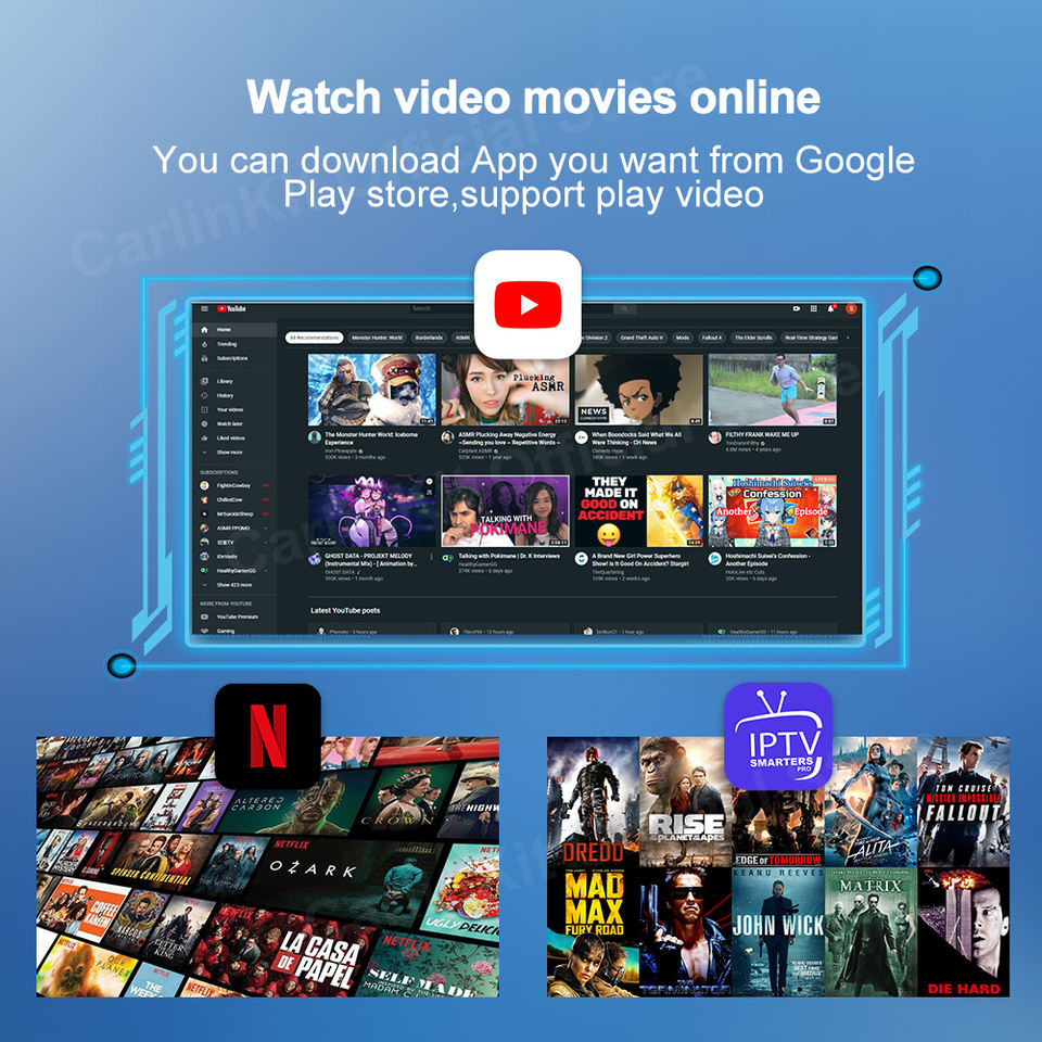 Bluetooth, SD Card, TF Card, Built-in WiFi, 3G/4G Sim CardConnection