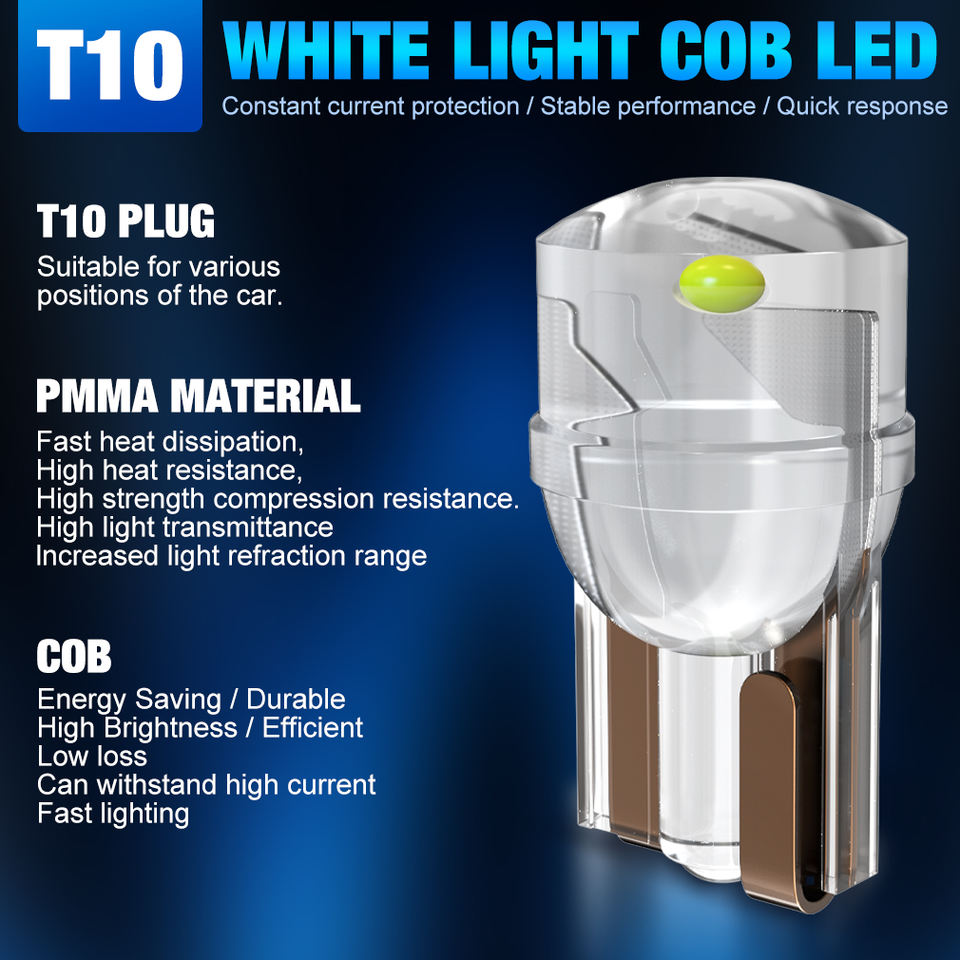 หลอดไฟโดมอ่านแผนที่ประตู12V อุปกรณ์ตกแต่งรถยนต์ W5W T10 COB สีขาว168 194 501ป้ายทะเบียนอัตโนมัติ