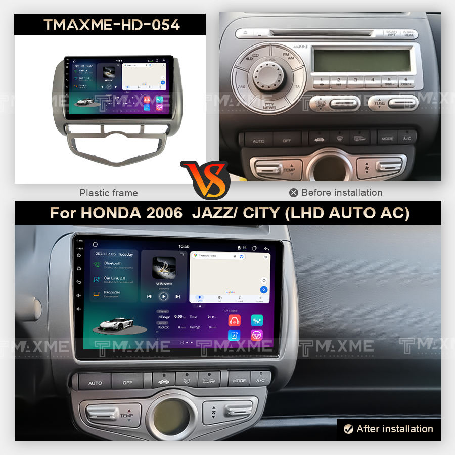หน้าจอสัมผัสแอนดรอยด์ในรถยนต์ขนาด 9 นิ้ว มัลติมีเดีย แอนดรอยด์ คาร์ดีวีดี สำหรับรถยนต์ฮอนด้า แจ๊ส/ซิตี้ ปี 2006 พร้อมเฟรมวิทยุติดรถยนต์ รองรับ Wireless Carplay