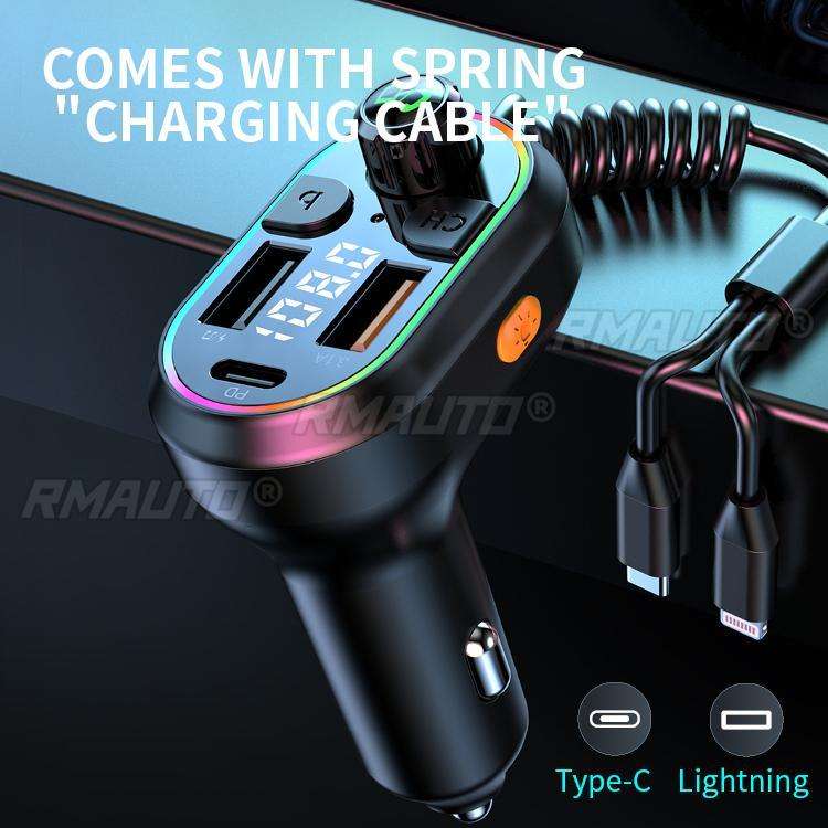 เครื่องส่งสัญญาณบลูทูธ 5.0 ในรถยนต์ ตัวรับสัญญาณเสียงไร้สาย เครื่องเล่น MP3 ในรถยนต์ ชาร์จเร็ว 25W PD พร้อมสายชาร์จพอร์ต Type-C ของ Apple