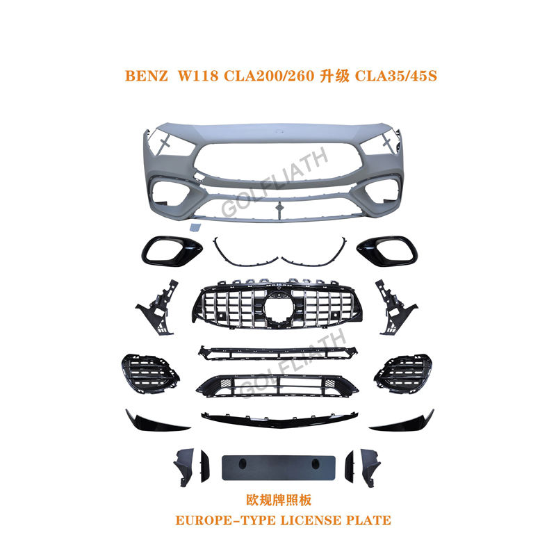 กันชนรถยนต์รวมถึงกระจังหน้าไอเสียและกันชนหน้าสำหรับ CLA200 CLA260สำหรับ CLA W118อัพเกรดเป็น CLA 35/45S