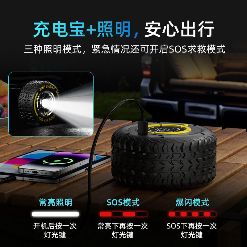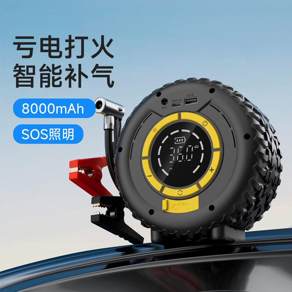 เครื่องจั๊มพ์สตาร์ทรถยนต์ฉุกเฉิน 8000mAh พร้อมจอ LCD ดิจิตอล ปั๊มลม และไฟ SOS สำหรับใช้กับรถยนต์