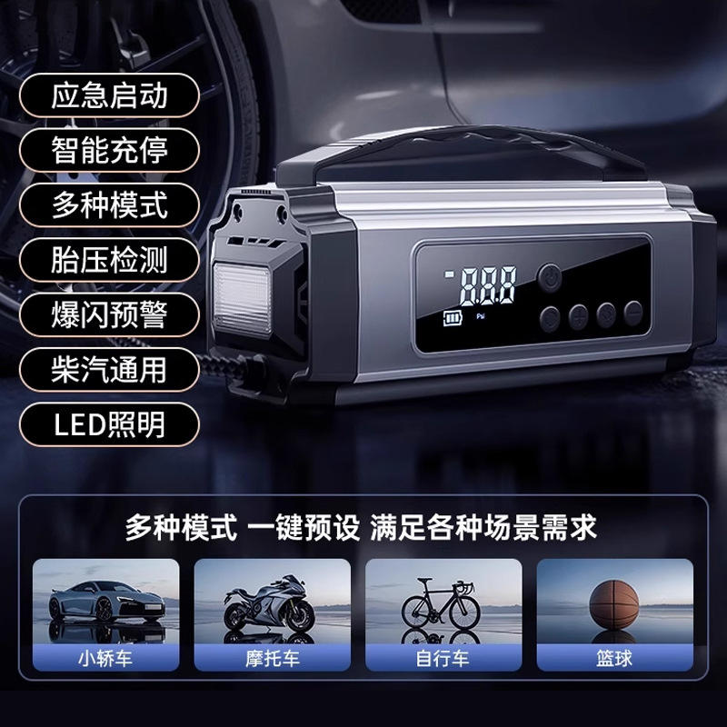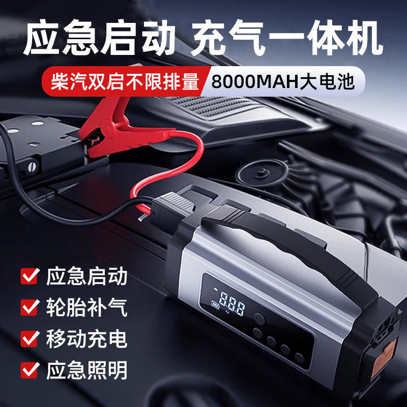 เครื่องปั๊มลมฉุกเฉินสำหรับรถยนต์ 12V หน้าจอดิจิตอล กระแสไฟสูงสุด 300A พร้อมที่สูบลมยางและสตาร์ทรถ