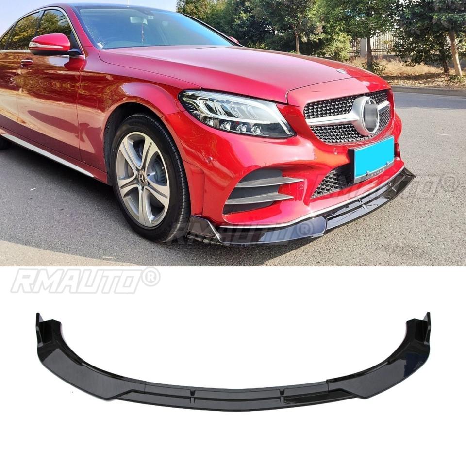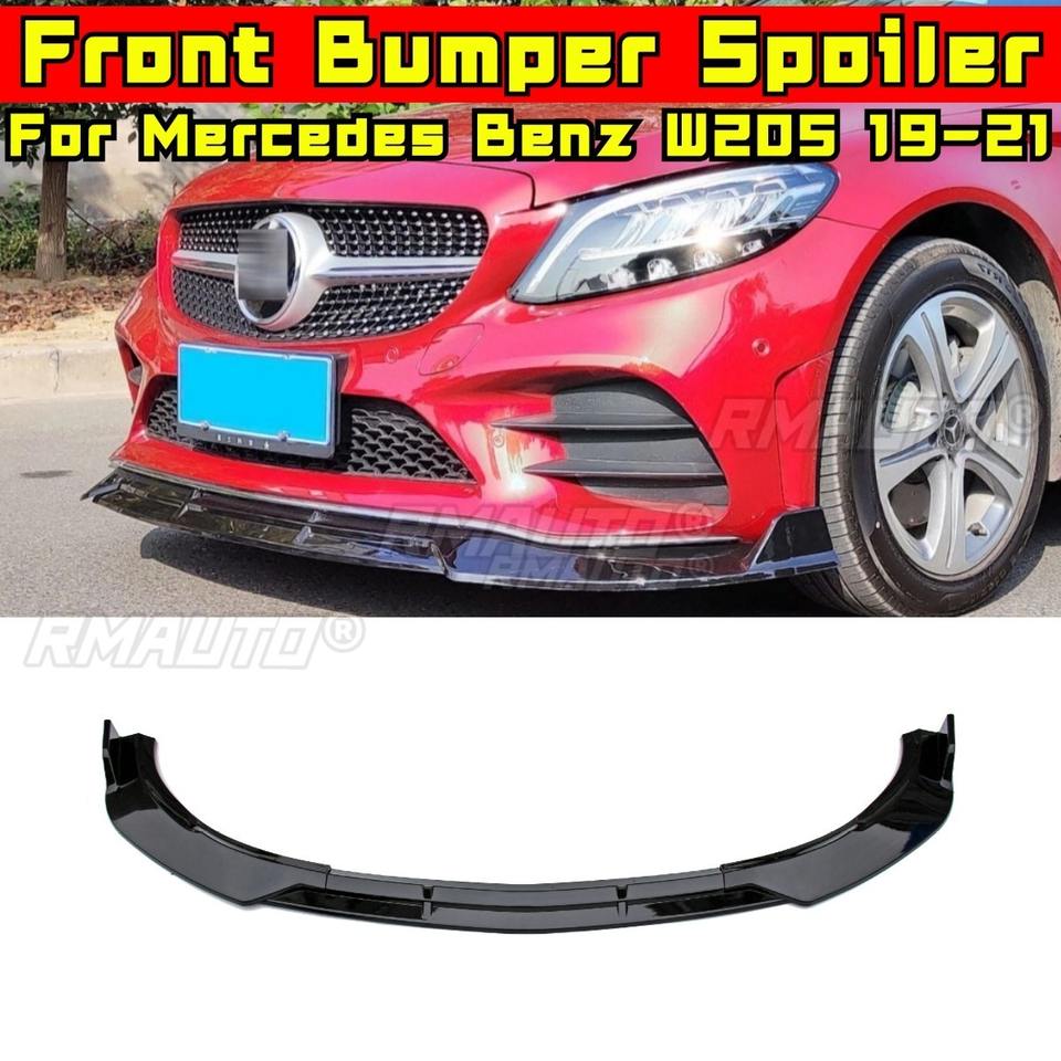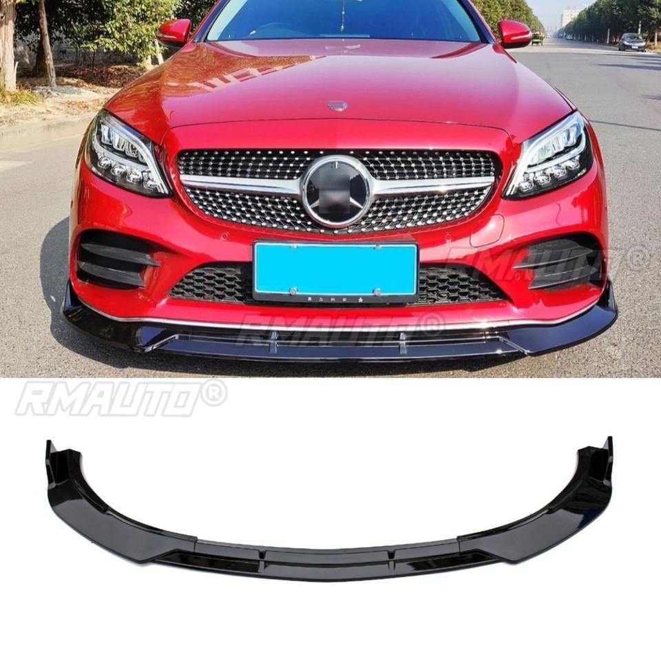 ลิ้นกันชนหน้ารถยนต์ สีดำเงา สำหรับตกแต่งรถยนต์เมอร์เซเดสเบนซ์ ซี-คลาส W205 ปี 2019-2021 อุปกรณ์ตกแต่งรถยนต์