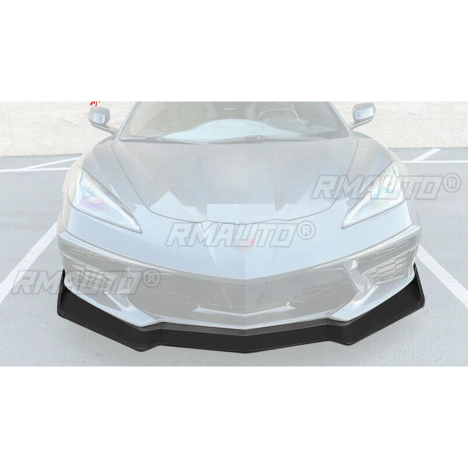 ลิ้นกันชนหน้ารถยนต์สำหรับ Chevy Corvette C8 ปี 2020-2022 ดิฟฟิวเซอร์ สปอยเลอร์ สปลิตเตอร์ ป้องกันรอยขีดข่วน ลายคาร์บอนไฟเบอร์ สีดำด้าน ปี 2021