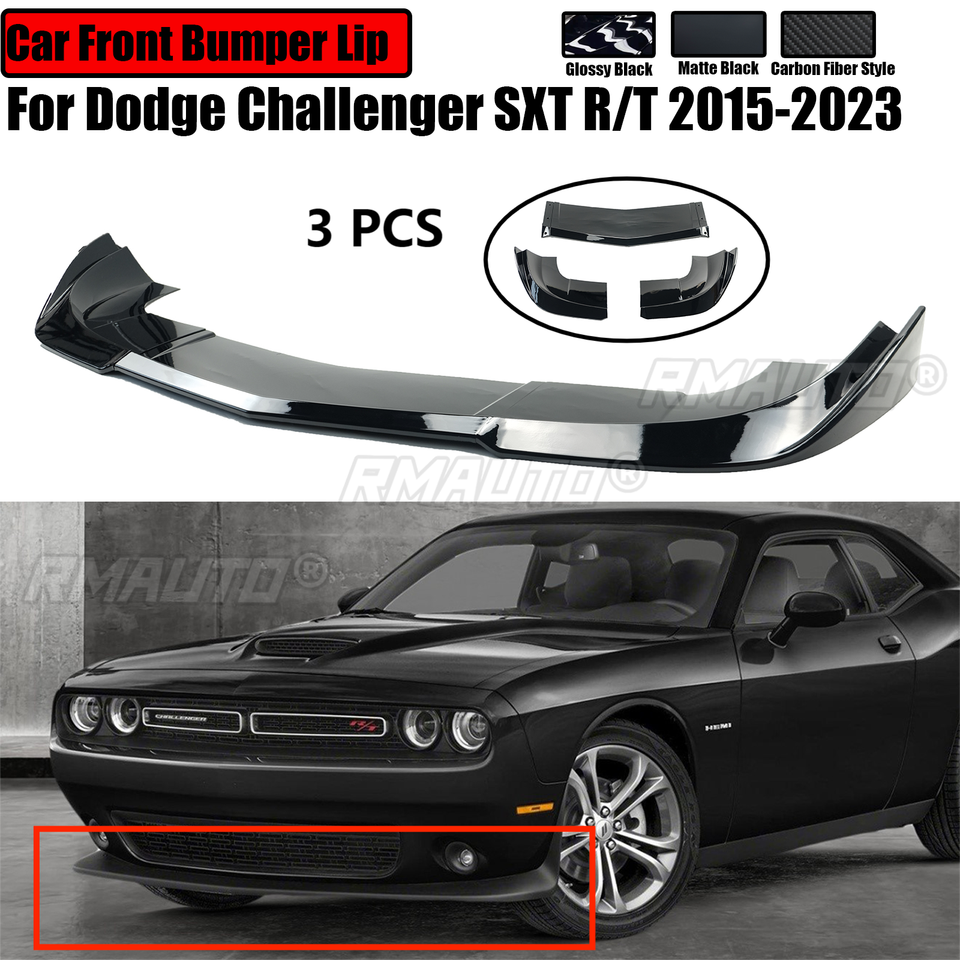 ลิ้นกันชนหน้ารถยนต์สำหรับ Dodge Challenger SXT R/T ปี 2015-2023 สปอยเลอร์ สปลิตเตอร์ ดิฟฟิวเซอร์ ลายคาร์บอนไฟเบอร์ สีดำเงา สีดำด้าน