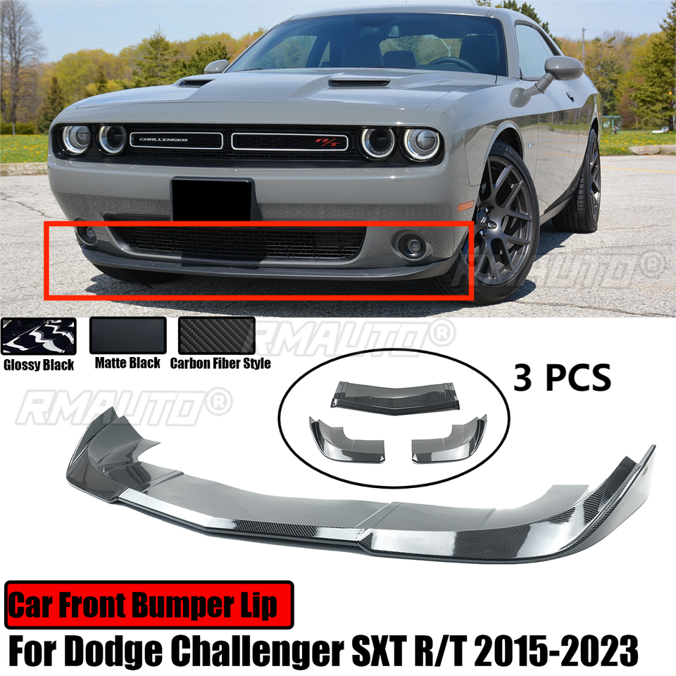 ลิ้นกันชนหน้ารถยนต์สำหรับ Dodge Challenger SXT R/T ปี 2015-2023 สปอยเลอร์แบบแยกส่วน ลายคาร์บอนไฟเบอร์ สีดำเงา สีดำด้าน 3 ชิ้น