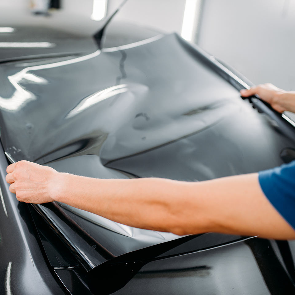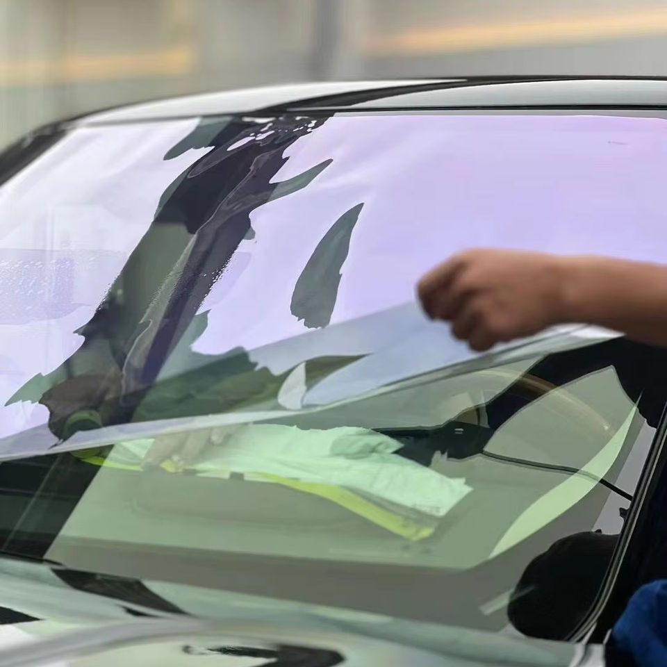 ฟิล์มกันแดดกระจกรถยนต์แบบม้วน ฟิล์ม PET ป้องกันแสงแดดเปลี่ยนสีได้ ป้องกันกระจกหน้ารถ ผิวมันเงา