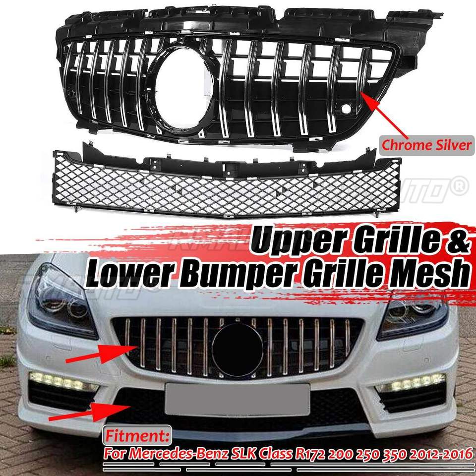 กระจังหน้ารถยนต์สีดำแบบตาข่าย สำหรับกันชนหน้าบน+ล่าง สำหรับรถยนต์เมอร์เซเดสเบนซ์ SLK คลาส R172 200 250 350 ปี 2012-2016