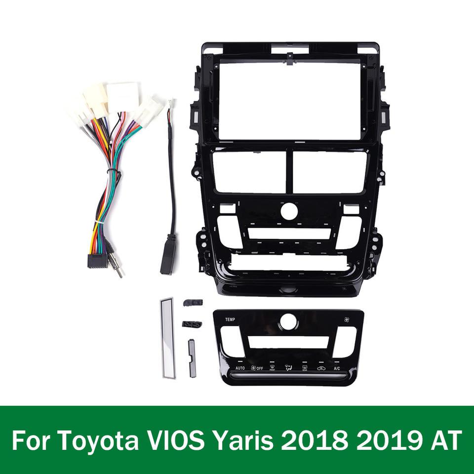 รถนำทาง GPS สเตอริโอสำหรับ Toyota VIOS Yaris 2018 2019 AT วิทยุ Fascias แผงกรอบ2 Din 9นิ้วหน้าจอสเตอริโอ