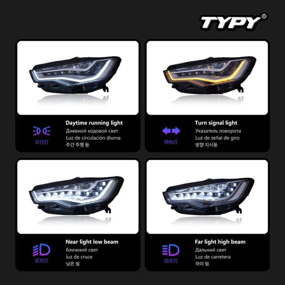 ชุดไฟหน้ารถยนต์สำหรับ Audi A6 ปี 2012-2015 อัพเกรดดัดแปลงเป็นไฟหน้า LED แบบไดนามิกใหม่