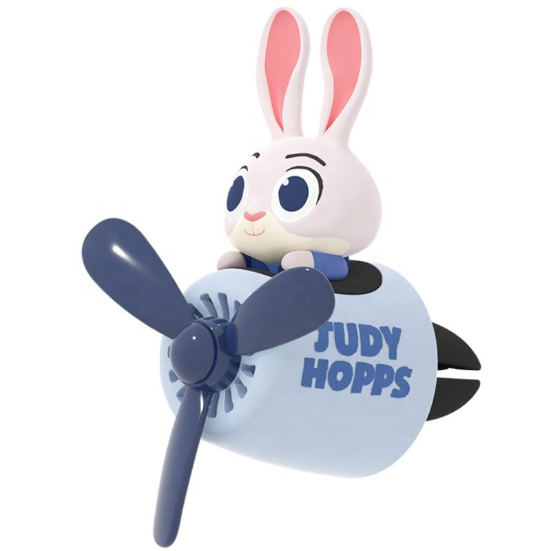 เครื่องพ่นละอองน้ำมันหอมระเหยในรถอุปกรณ์ตกแต่งภายในรถยนต์ใบพัดหมุนลายการ์ตูนสำหรับ JUDY hopps