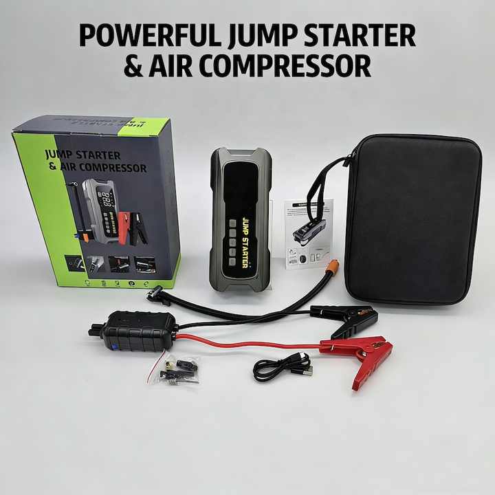 เครื่องจั๊มพ์สตาร์ททรงพลังสำหรับงานหนัก พร้อมปั๊มลม