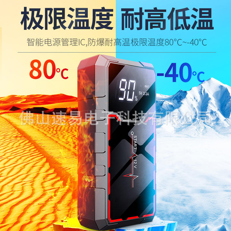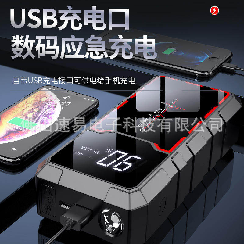 เครื่องจั๊มพ์สตาร์ทรถยนต์ 12V พร้อมหน้าจอดิจิตอล ชาร์จผ่าน USB พกพาสะดวก ใช้ในยามฉุกเฉินสำหรับยานพาหนะและกิจกรรมกลางแจ้ง