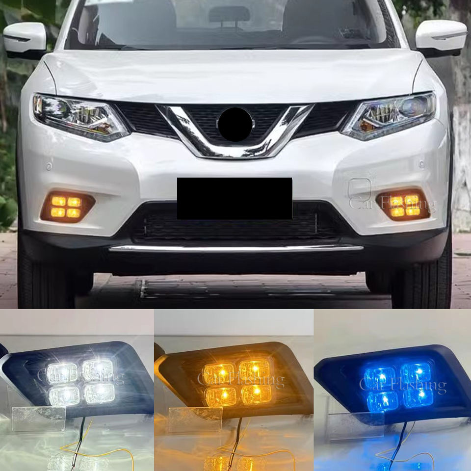ไฟเดย์ไลท์ LED สำหรับรถยนต์นิสสัน เอ็กซ์เทรล ปี 2014 2015 2016 พร้อมฝาครอบไฟตัดหมอกและไฟเลี้ยว