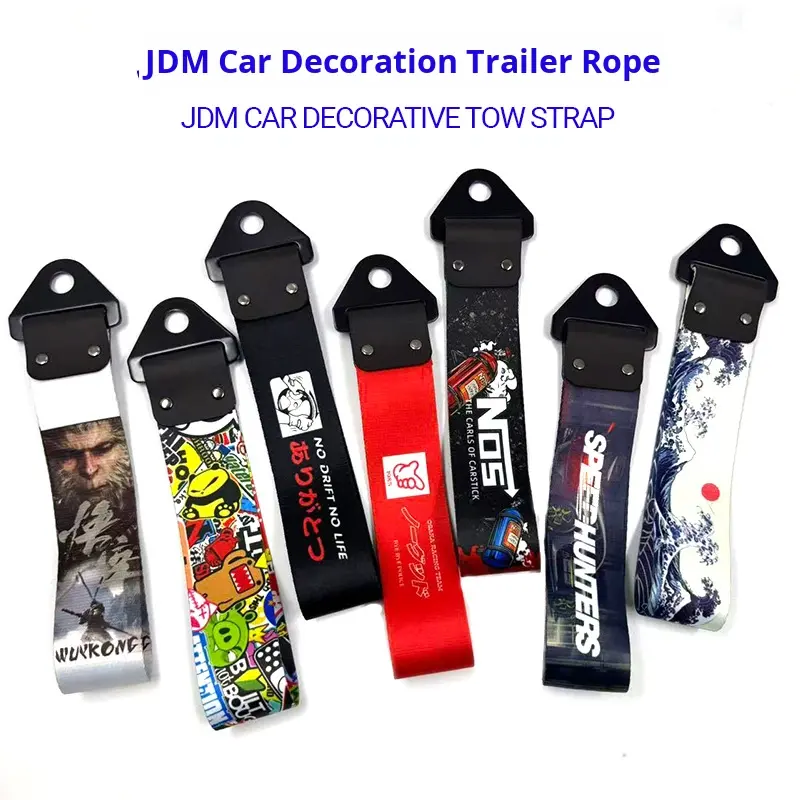 สายลากจูงตกแต่งกันชนหน้ารถยนต์ ลายพิมพ์ดิจิทัลวัฒนธรรม JDM พร้อมหัวเข็มขัดโลหะ ทำจากโพลีเอสเตอร์