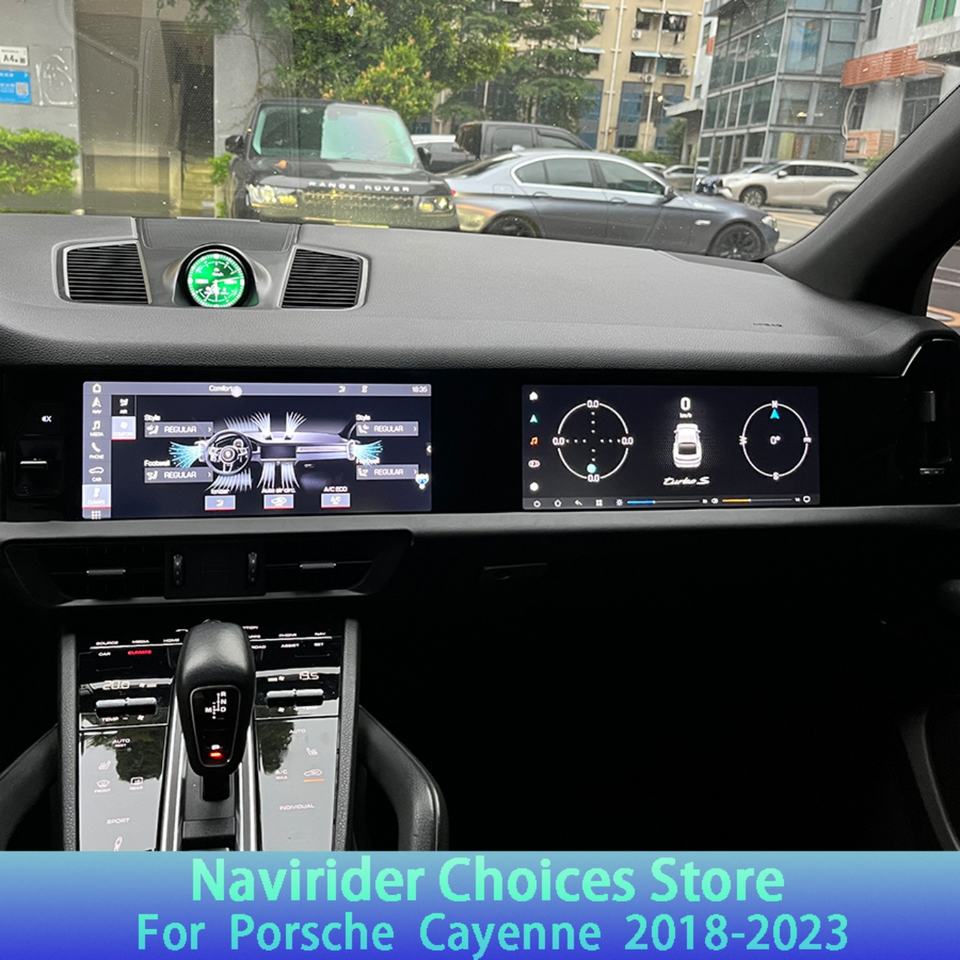 วิทยุติดรถยนต์หน้าจอสัมผัสขนาด 12.3+12.3 นิ้ว สำหรับ Porsche Cayenne ปี 2018-2024 รุ่นอัปเกรดปี 2025 จอแสดงผลใหม่ Android 15 รองรับมีเดีย วิดีโอ GPS และ Carplay