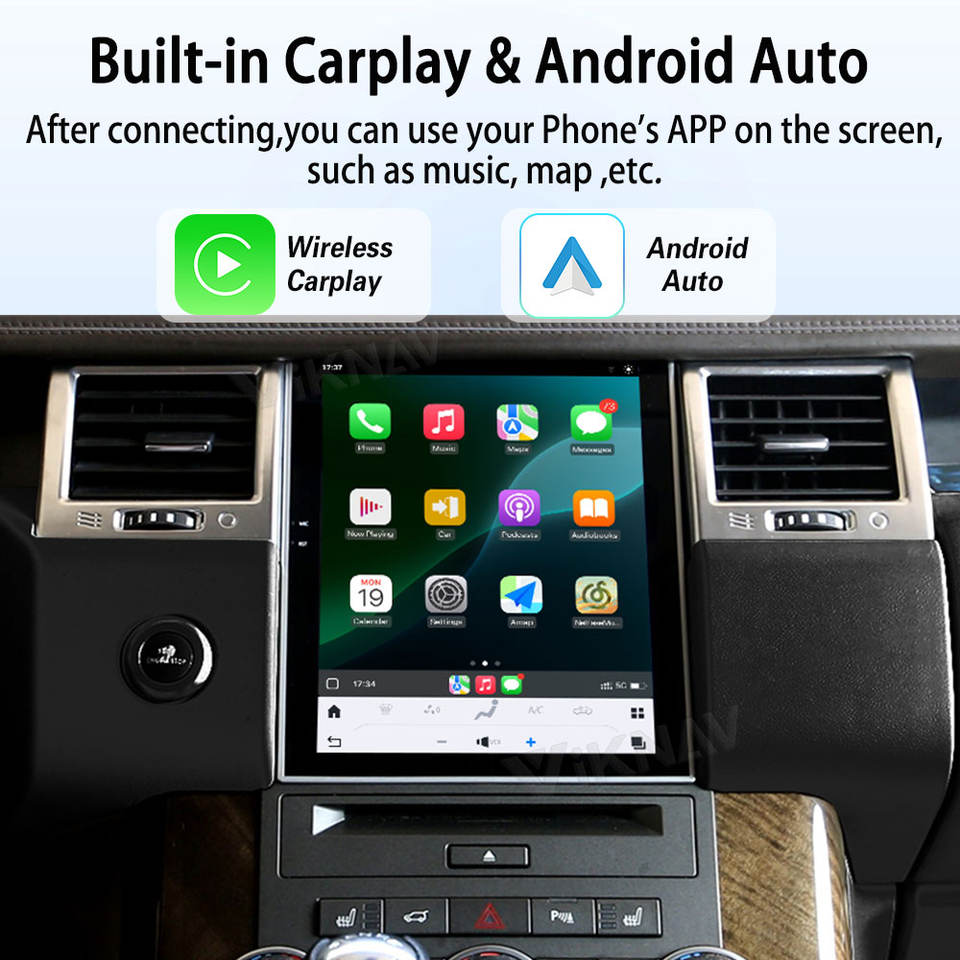 แผงควบคุมวิทยุในรถยนต์สำหรับแลนด์โรเวอร์ เรนจ์โรเวอร์ สปอร์ต L320 ปี 2009-2013 รองรับ Apple CarPlay และ Android Auto แบบไร้สาย พร้อมระบบนำทาง GPS สำหรับรถยนต์พวงมาลัยขวา