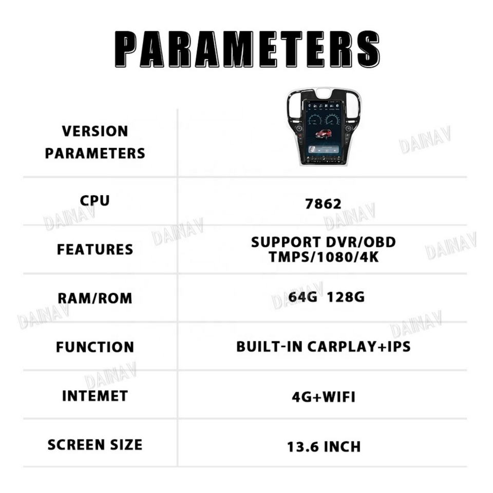 วิทยุติดรถยนต์สำหรับ Chrysler 300C ปี 2013-2022 หน้าจอสัมผัสขนาด 13.6 นิ้ว ระบบ Android 11 Qualcomm รองรับ Carplay เครื่องเล่นมัลติมีเดียพร้อมระบบนำทาง GPS