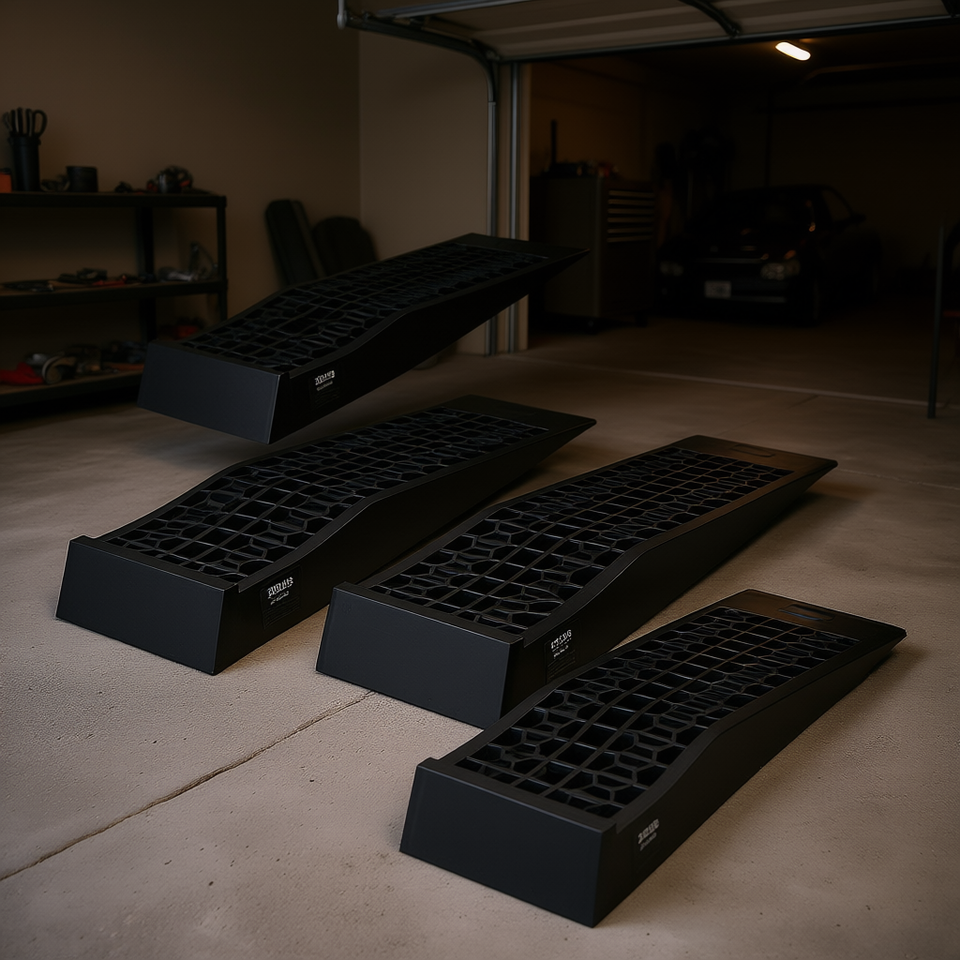 ทางลาดสำหรับรถยนต์ ความสูงยก 2.56 นิ้ว รับน้ำหนักได้ 20,000 ปอนด์ แบบพกพา โปรไฟล์ต่ำ รองรับน้ำหนักมาก ใช้สำหรับยกรถในโรงรถ