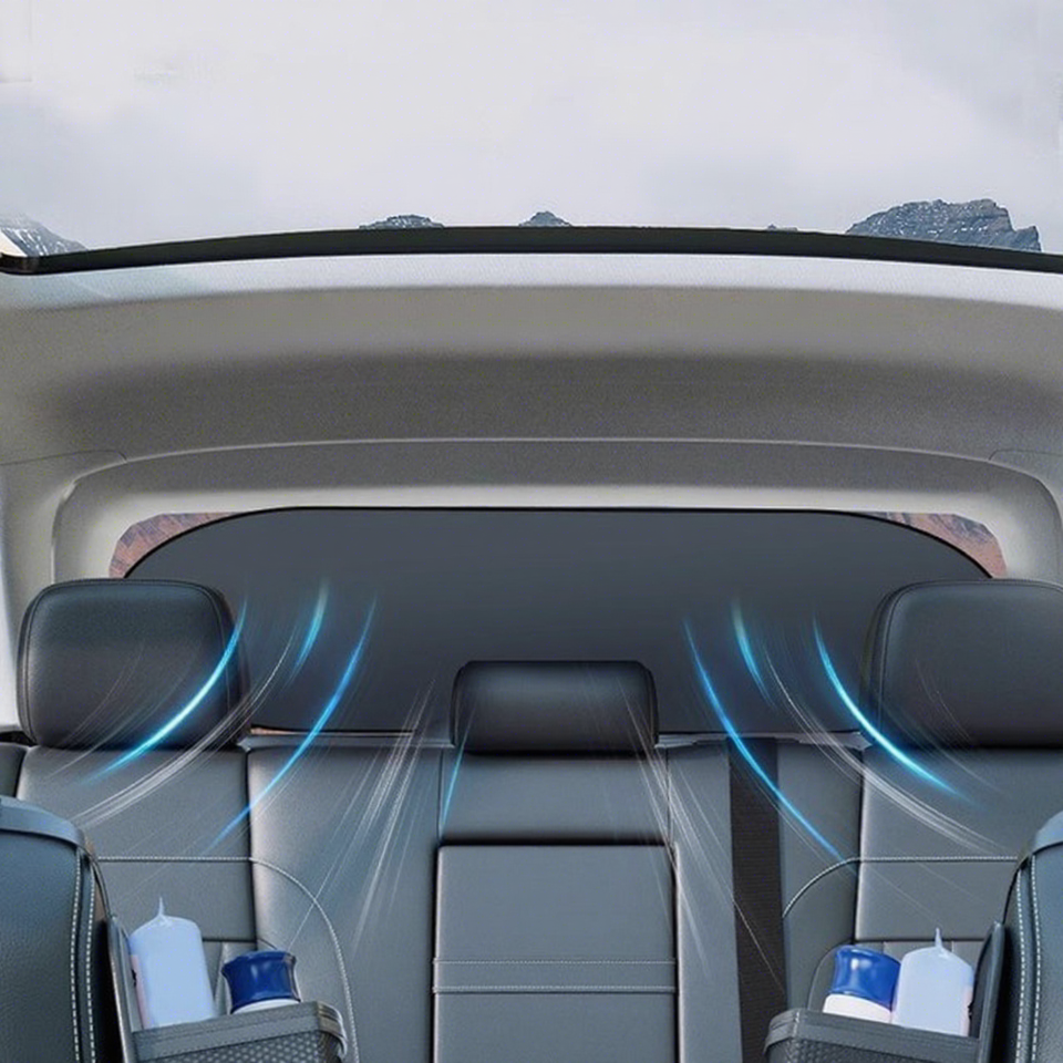 ม่านบังแดดกระจกหลังรถยนต์ 100x50 ซม. เคลือบสีเงิน ป้องกันความร้อน ป้องกันแสงแดด ติดตั้งด้วยจุ๊บสุญญากาศ ปรับแต่งได้