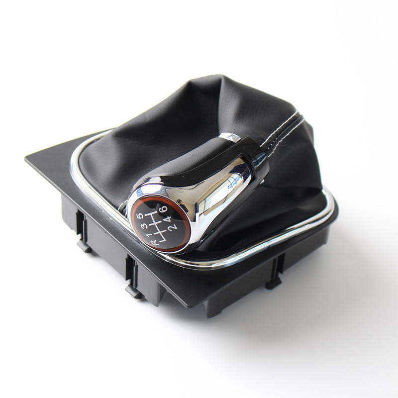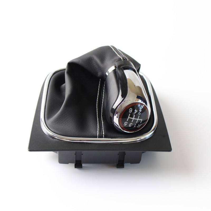 ฝาครอบหัวเกียร์หนังเย็บด้ายสีขาวสำหรับโฟล์คสวาเก้นกอล์ฟ 5 6 เกียร์ธรรมดาตัวป้องกันคันเกียร์