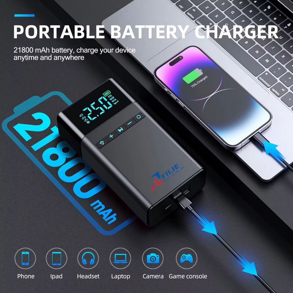 เครื่องช่วยสตาร์ทรถยนต์ รถบรรทุก พร้อมแบตเตอรี่สำรอง ที่สูบลมยาง ไฟ LED คอมเพรสเซอร์ลม 12V กระแสไฟสูงสุด 1800A