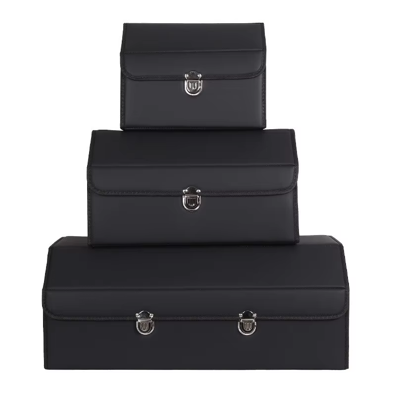 กล่องเก็บของท้ายรถหนังทรงสี่เหลี่ยมทันสมัย พับได้ เป็นมิตรกับสิ่งแวดล้อม ของตกแต่งภายในรถยนต์ กล่องจัดระเบียบ ของใช้จัดเก็บอเนกประสงค์