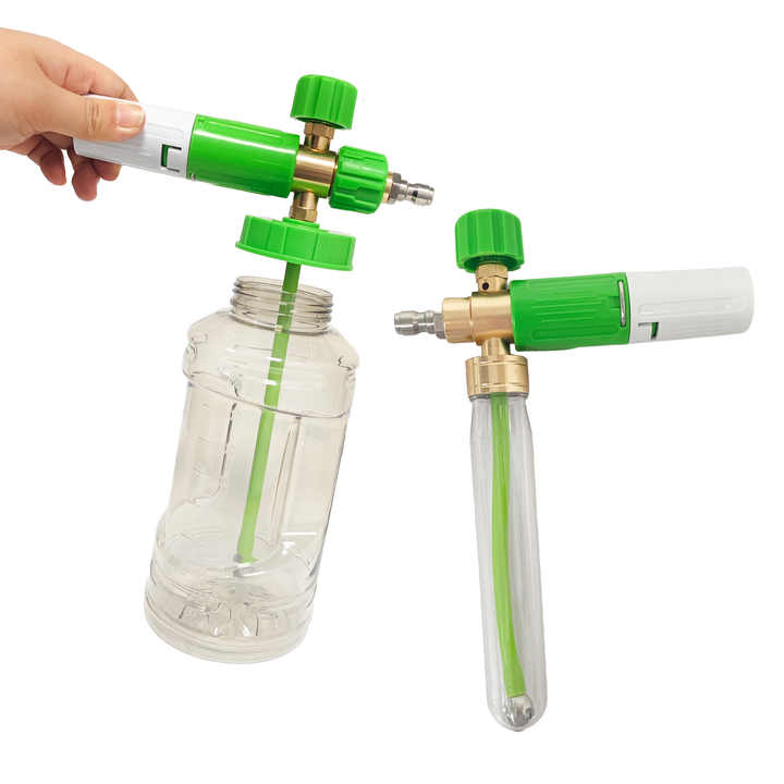 หัวฉีดล้างรถแบบปรับได้ ขวดใสสำหรับใส่โฟม หัวฉีดโฟมสำหรับล้างรถ อุปกรณ์ทำความสะอาดรถยนต์