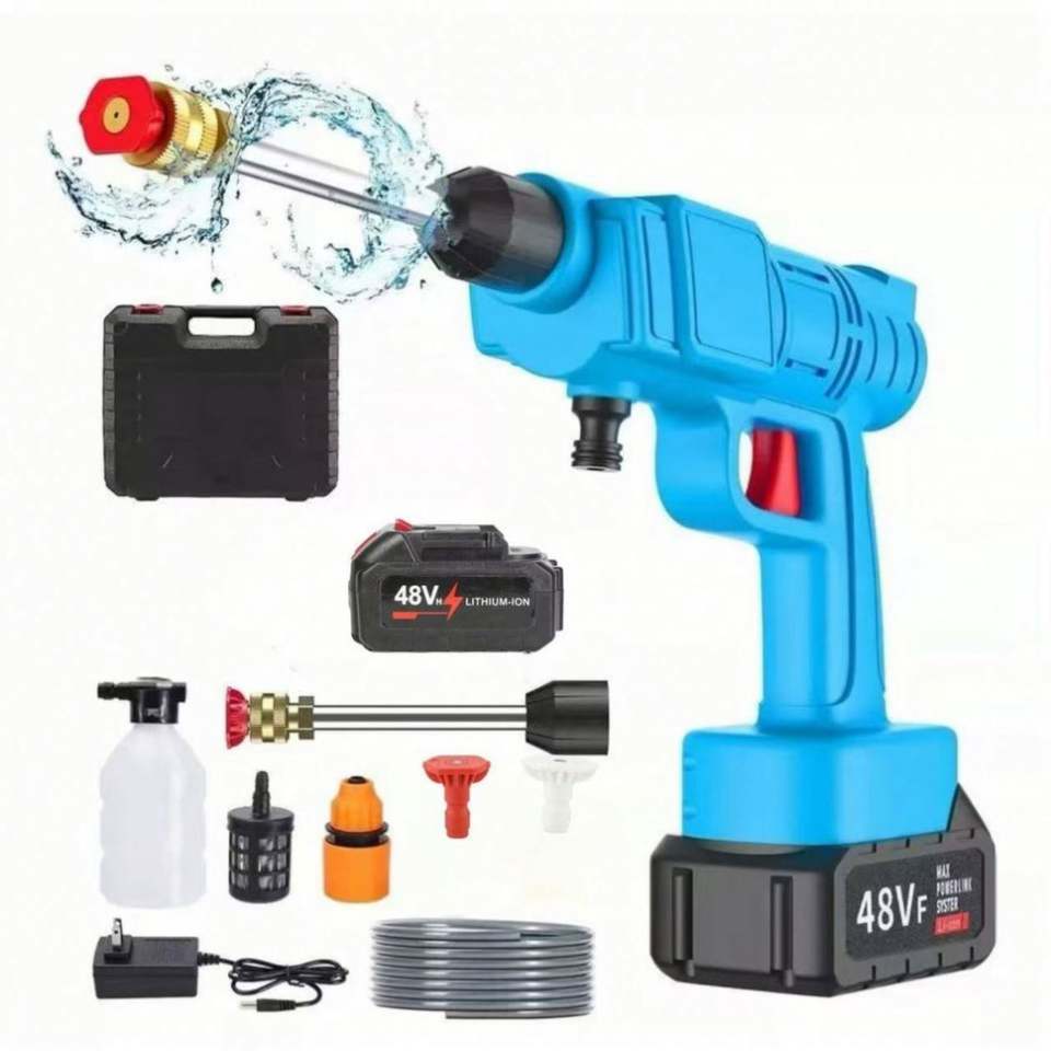 ปืนฉีดน้ำล้างรถไร้สาย แบตเตอรี่ลิเธียมแบบพกพา เครื่องฉีดน้ำแรงดันสูงสำหรับล้างรถ