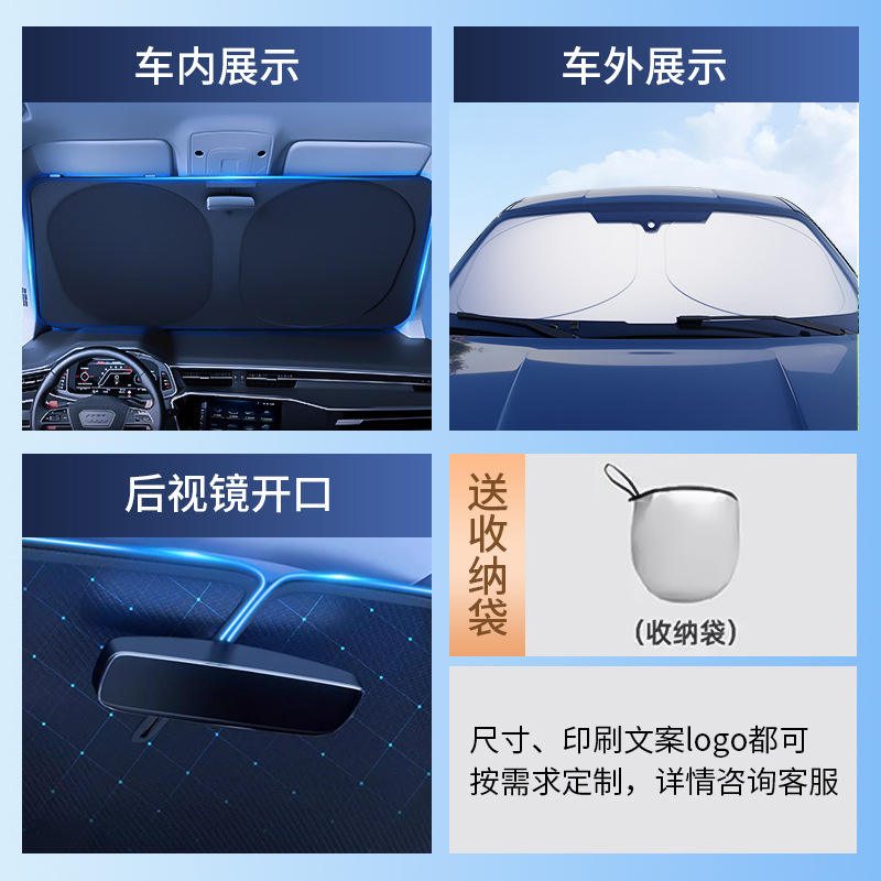 ม่านบังแดดกระจกรถยนต์ สีเงินไทเทเนียม ม่านบังแดดกระจกหน้าแบบพับได้ ป้องกันแสงแดด ฉนวนกันความร้อน ใช้ในฤดูร้อน