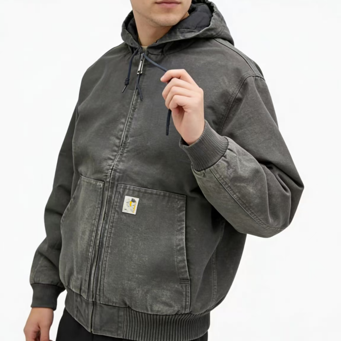 เสื้อผ้าทำงานสำหรับผู้ชาย ฤดูหนาว สไตล์ลำลอง ผ้าแคนวาสหนา คอปกแบบดีทรอยต์ ซิปหน้ากันลม พร้อมโลโก้