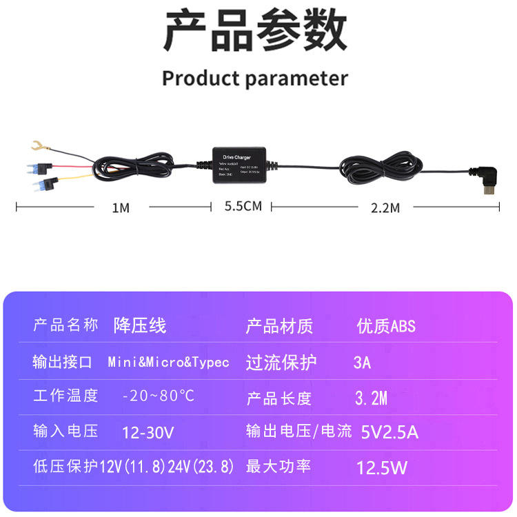 กล้องติดรถยนต์ สายไฟแบบสามแกน บันทึกแบบไทม์แลปส์ สายไฟสำหรับรถยนต์ ขายตรง L146