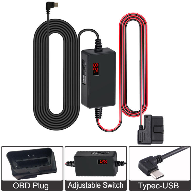 สายไฟลดแรงดันสำหรับกล้องติดรถยนต์หรือกล้องติดหน้ารถ พร้อมจอแสดงผลดิจิตอล OBD ปรับแรงดันไฟฟ้าต่ำได้ ขายตรงจากโรงงาน รุ่น L141