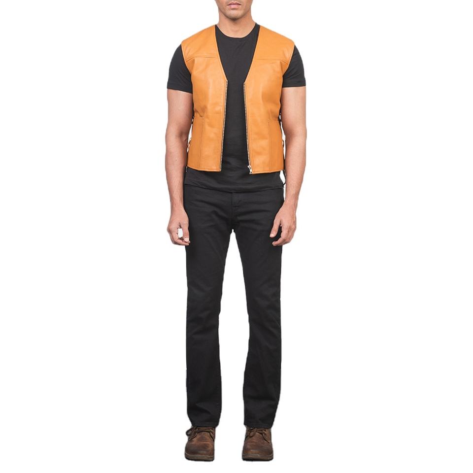 เสื้อกั๊กหนังแท้สีน้ำตาล ดีไซน์คอกลม ปิดด้วยกระดุมแบบปกปิด สวมใส่ด้านนอก สไตล์วินเทจสำหรับฤดูใบไม้ร่วง ระบายอากาศได้ดี
