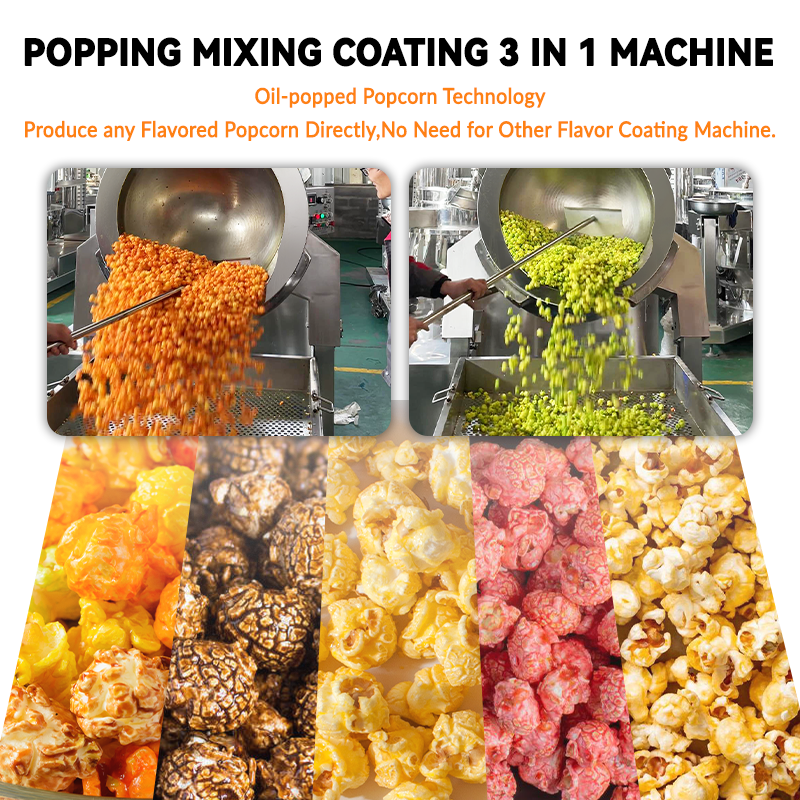 เครื่องทำป๊อปคอร์นคาราเมลไฟฟ้าสายการผลิตข้าวโพดคั่วคาราเมลเครื่องทำป๊อปคอร์นน้ำมัน