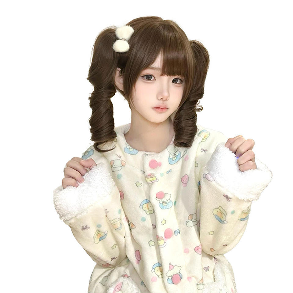 วิกผมลอนยาวแบบคาราเมลพุดดิ้งโลลิต้า ทรงหางม้าคู่ พร้อมคลิปหนีบ สำหรับผู้หญิง แบบไม่ต้องใช้กาว สไตล์ลอนสปริง