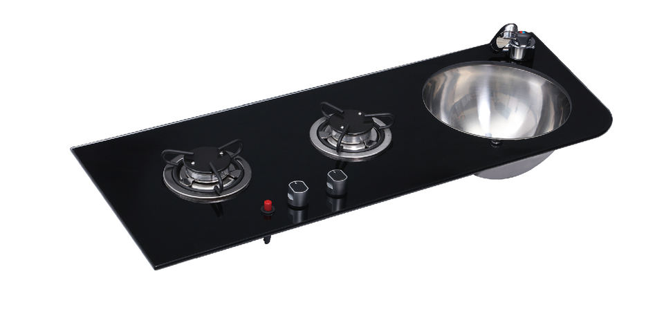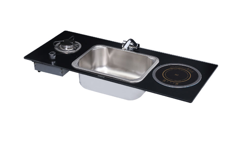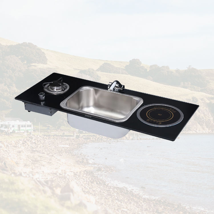 อ่างล้างจานในรถบ้านพร้อมเตาแม่เหล็กไฟฟ้าและเตาแก๊สแบบหัวเดียว อะไหล่รถบ้าน