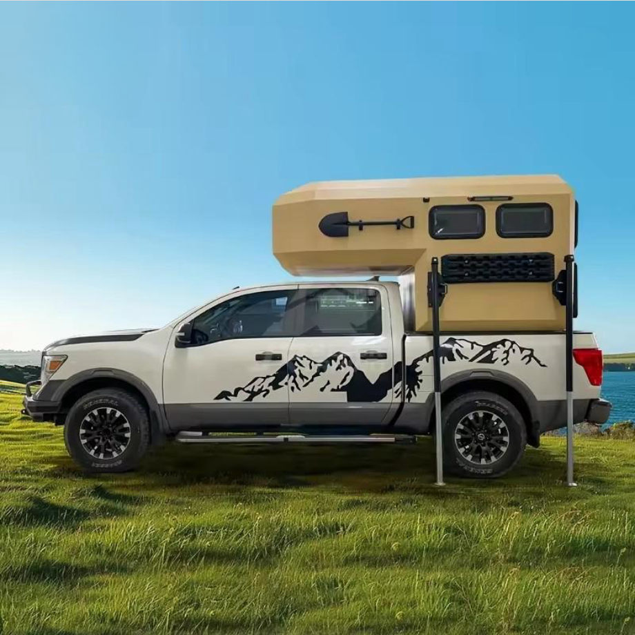 รถพ่วงขนาดเล็กรถลากคาราวานรถออฟโรดสำหรับตั้งแคมป์พร้อมฝาเลื่อนออกทางข้างนอกห้องครัวห้องน้ำ