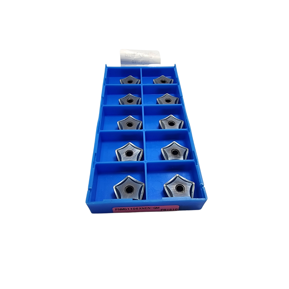 10ชิ้นเครื่องกัดคาร์ไบด์เกรด PNMG1106XNEN-GM เคลือบ CVD รูปทรงรูปหลายเหลี่ยม PR1510