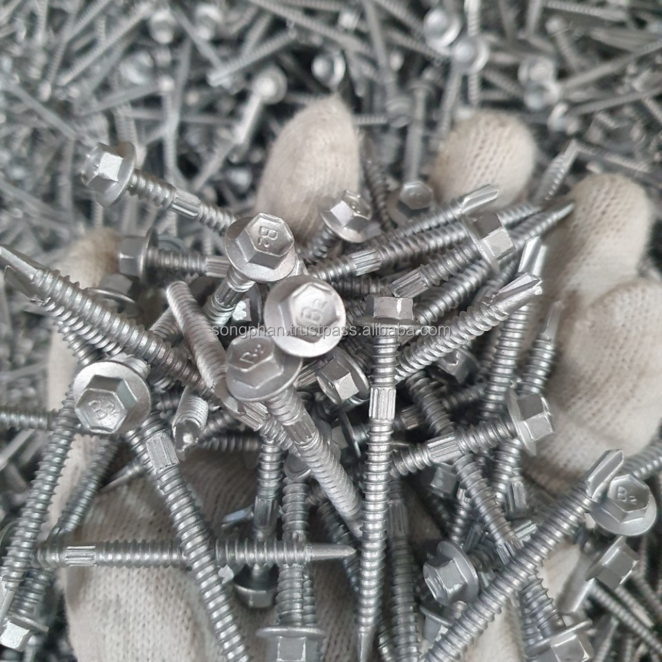สกรูเจาะเกลียวปลายแหลมหัวหกเหลี่ยมขนาด M4.8-M5.5 สำหรับงานไม้ มาตรฐาน DIN ผลิตจากเหล็กคาร์บอน 1022 ชุบสังกะสี ผลิตในเวียดนาม