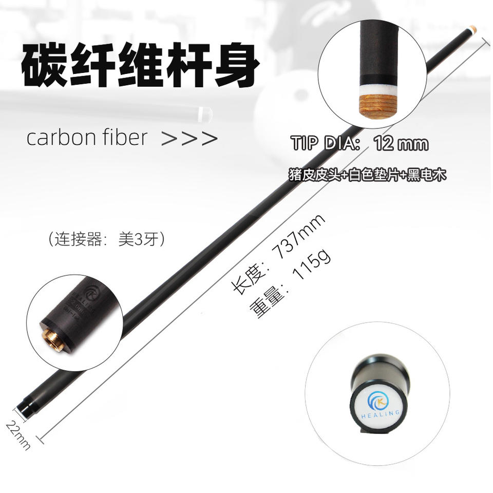 ไม้คิวบิลเลียดคาร์บอนไฟเบอร์ หัวคิวขนาดเล็ก 12 มม. แบบ 8 ฟัน สำหรับเกมพูล