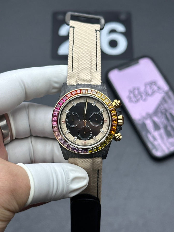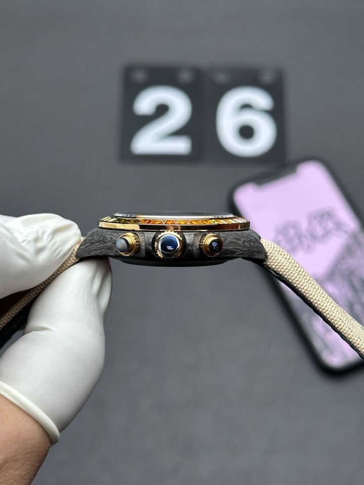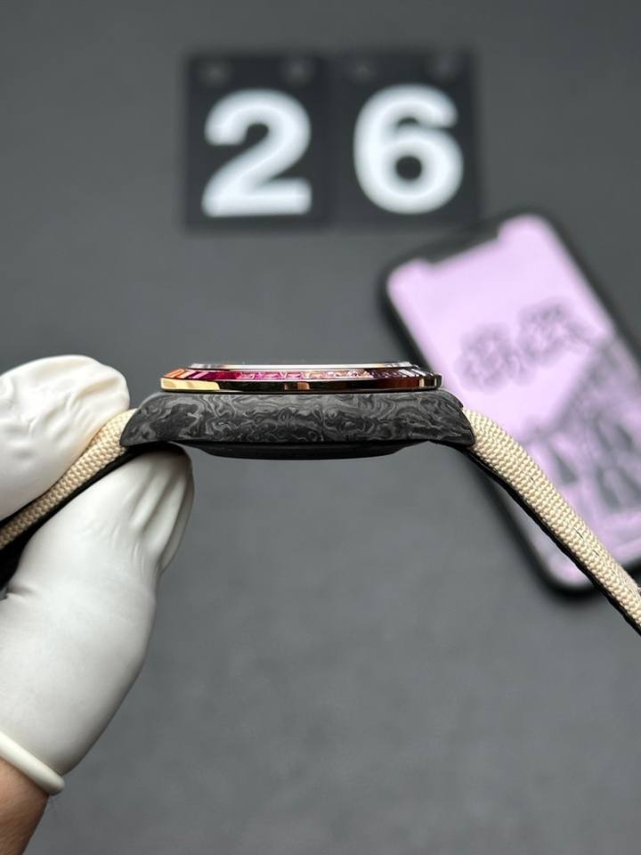 รุ่นคาร์บอนไฟเบอร์แบบปรับแต่งได้ - สายรัดทอจากเส้นใยสังเคราะห์ - ระบายอากาศได้ดีและสวมใส่สบาย - เนื้อสัมผัสนุ่ม - นาฬิกาแบบกลไก