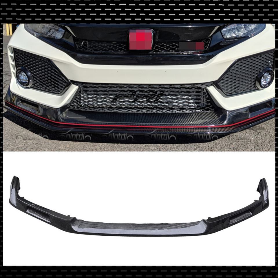 กันชนหน้าแบบขอบคางทำจากคาร์บอนไฟเบอร์ตัวแยกด้านหน้าสำหรับ Honda Civic Gen 10TH FK8 Type R Si 2016 +