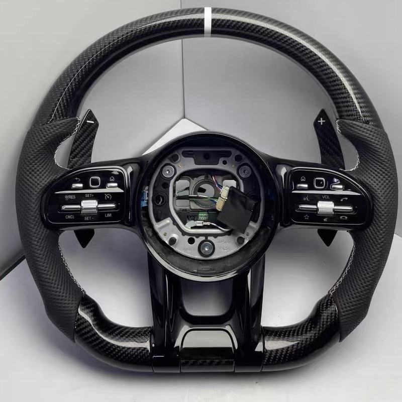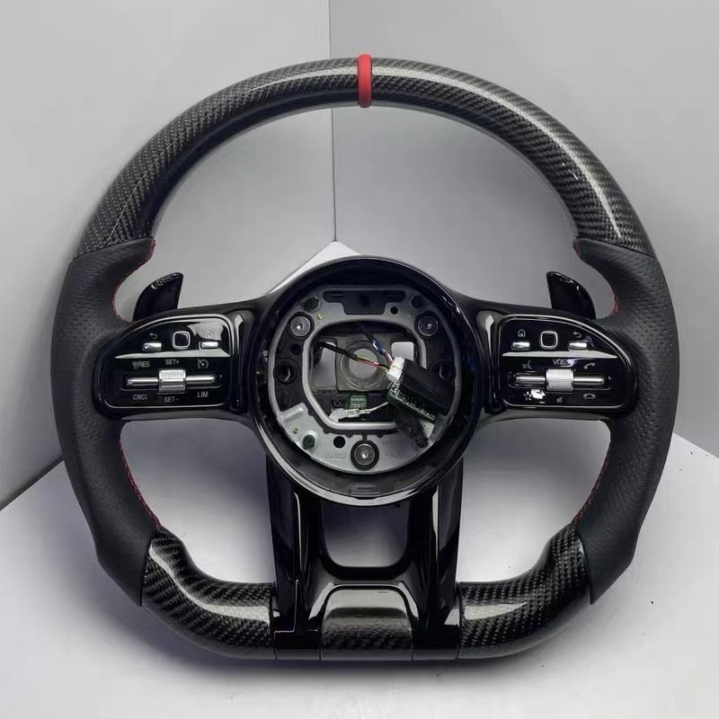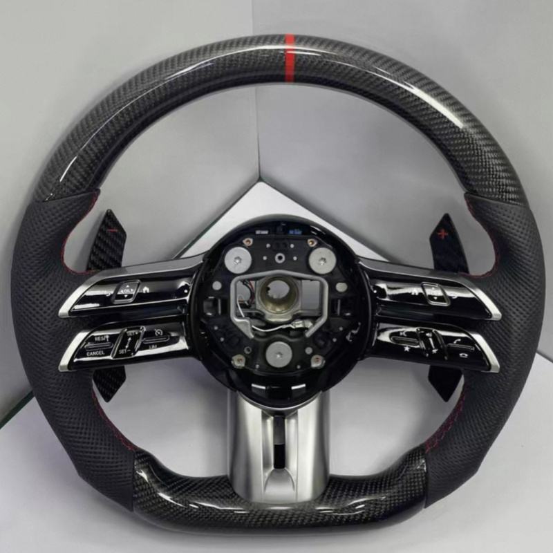 พวงมาลัยสปอร์ตคาร์บอนไฟเบอร์สำหรับรถแข่ง Mercedes-Benz C E S CLA GLC GLE GLS W205 W213 W222 W177 AMG W204 W212
