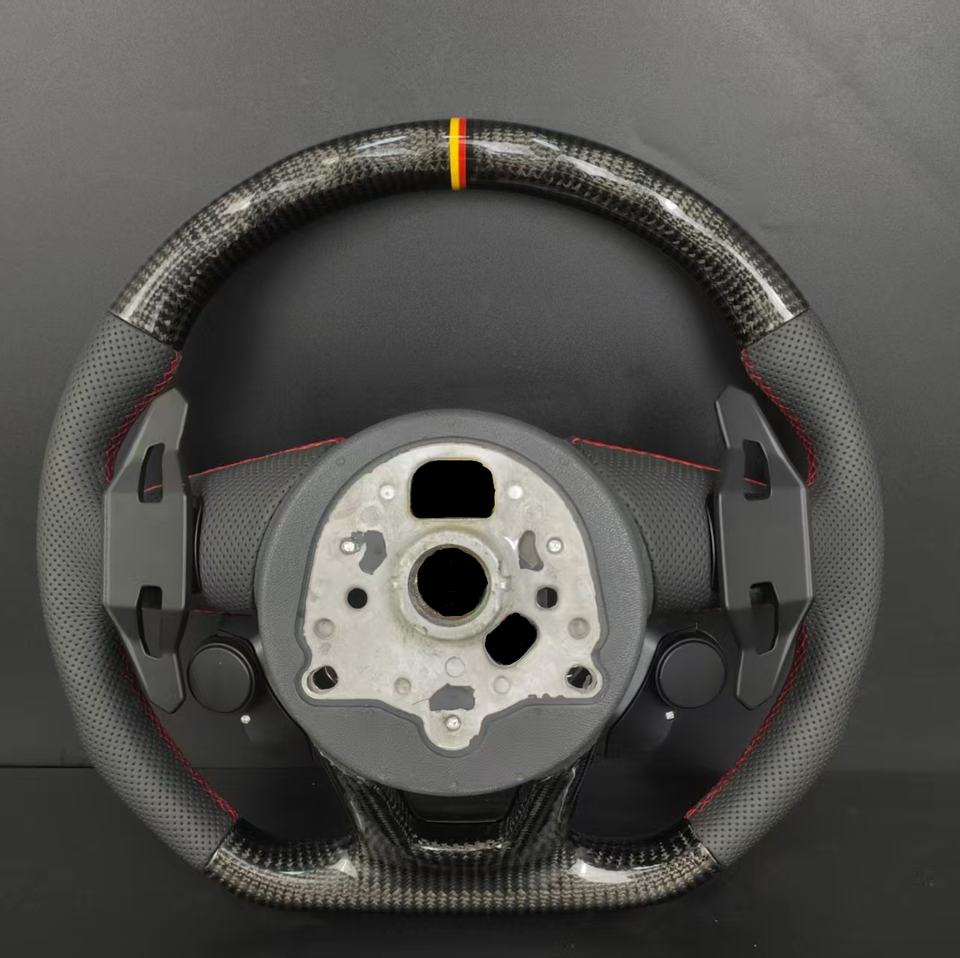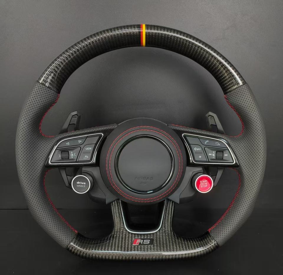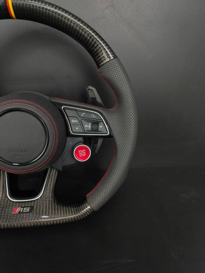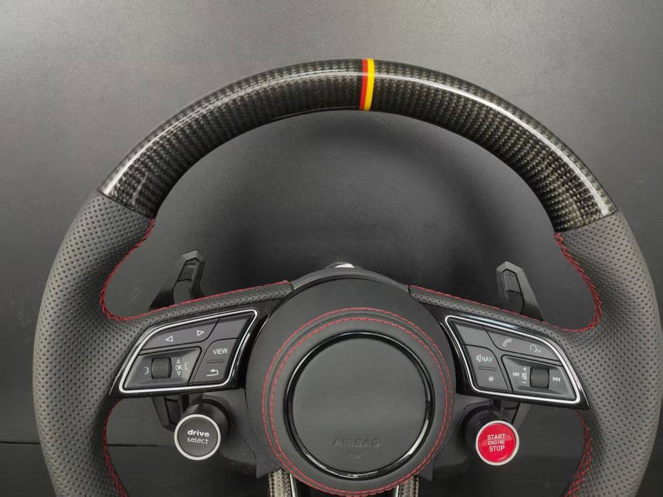 พวงมาลัยหุ้มหนังคาร์บอนไฟเบอร์สำหรับรถ Audi TT S4 S5 S6 S7 S8 A3 A4 A5 A6 A7 A8 Q3 Q5 Q7อัพเกรด R8