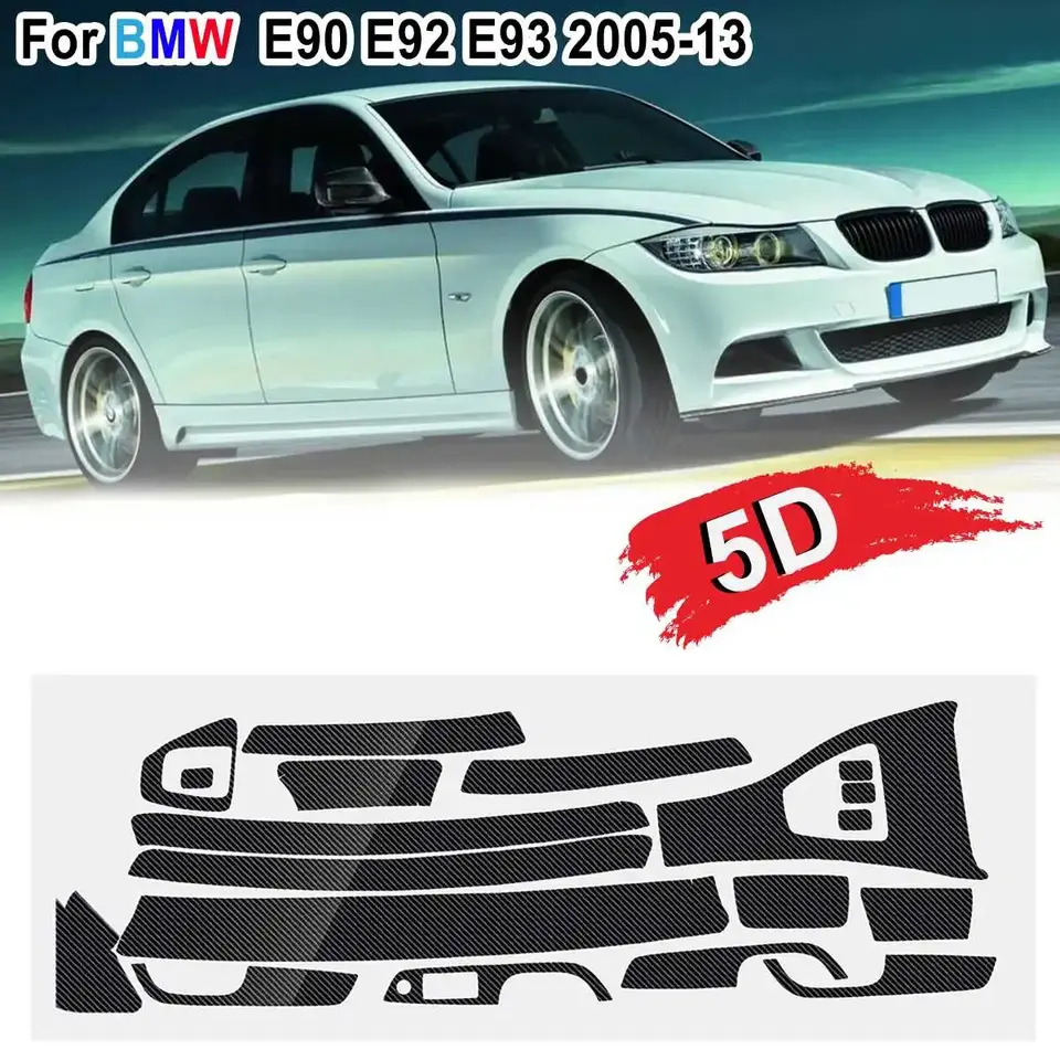 สติกเกอร์คาร์บอนไฟเบอร์ไวนิลตกแต่ง5D มันวาว/3D ด้าน15ชิ้น LHD สำหรับ BMW E90 E92 E93 2005-2013