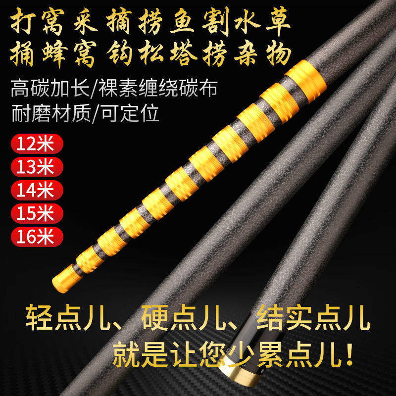 คันเบ็ดคาร์บอนไฟเบอร์แบบยืดหดได้ 12-16 เมตร น้ำหนักเบาและแข็งแรง สำหรับตกปลาในน้ำลึกและตกปลาแบบใช้เหยื่อ