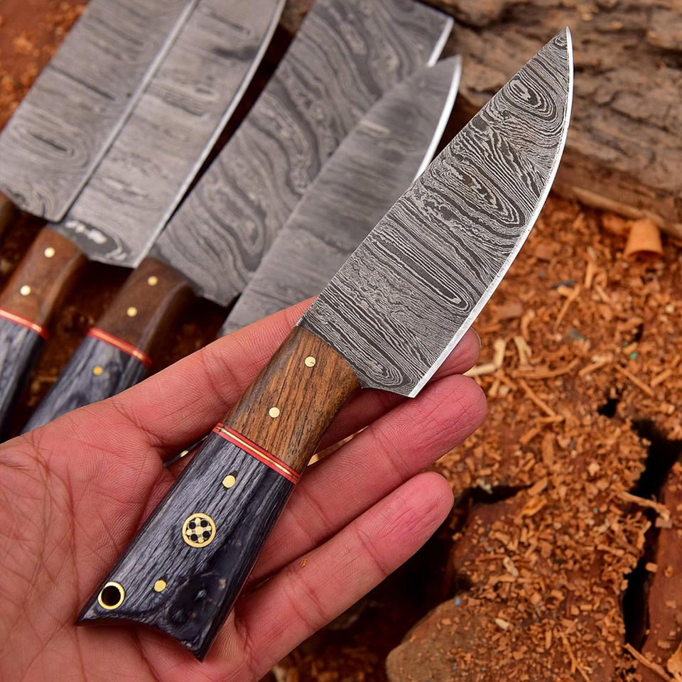 ชุดมีดครัวเหล็กกล้าคาร์บอนพร้อมด้ามไม้ สำหรับทำอาหารที่บ้านและการเตรียมอาหารระดับพรีเมียม